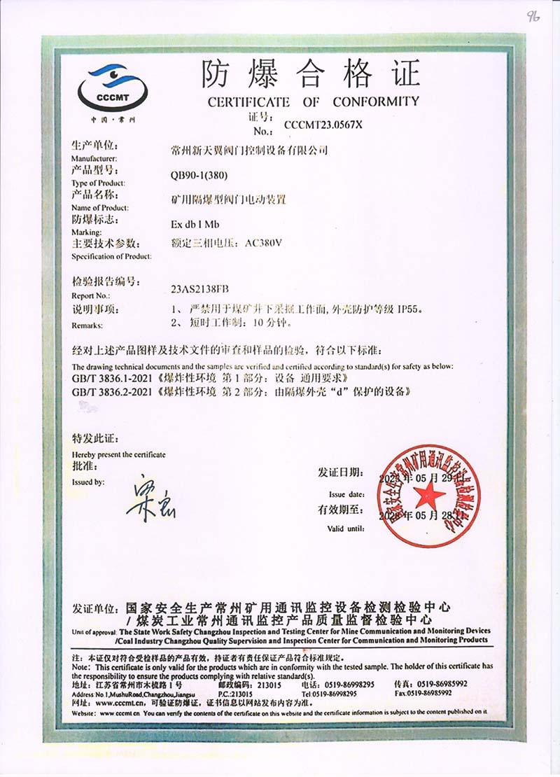 隔爆型DZB 中國國家強制性產品認證證書108.2