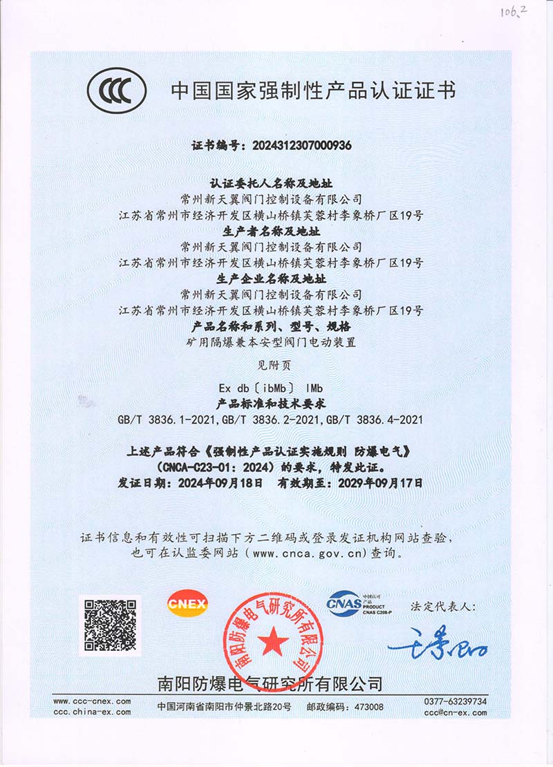 隔爆型DZB 中國國家強制性產品認證證書108.1